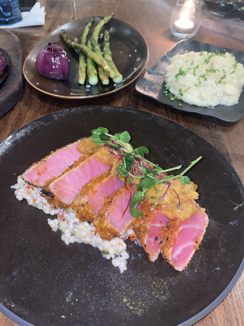 Dinner at Bak was EPIC. It was so romantic and the service was the best I have ever received. Jair was our waiter and he was always close by to assist us with anything we needed. He informed us about the menu and top choices. I was surprise to find out that all furniture was made custom even the dinner plates. Marcus has USDA New York steak with a side of asparagus and I ordered the Moroccan Tuna with a side order of mashed potatoes that was exquisite. For our drinks of choice I had a Mai Tai and a Hibiscus Margarita and Marcus had a Long Island.